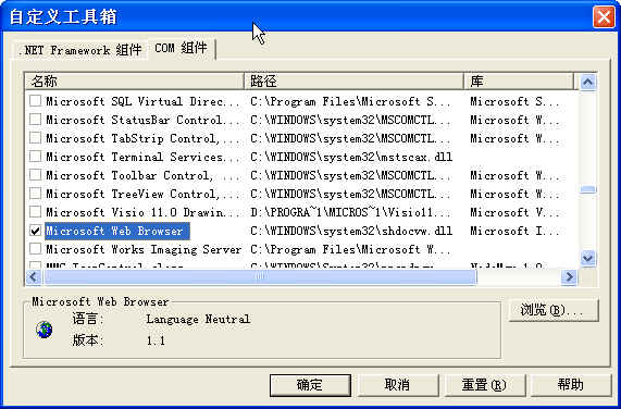 VS.net帮我们做好了从com组件到托管组件的转换,如果不使用vs.net,你也可以使用aximp工具手工转换: aximp c:\windows\system\shdocvw.dll,会生成AxSHDocVw.dll 和 SHDocVw.dl,然后在代码里引用它即可。