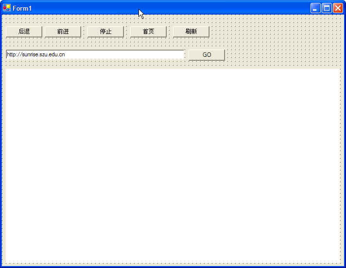 4、现在把它拖放到窗体上来,然后拖放一个TextBox供输入url,以及几个button用来实现“前进”、“后退”、“浏览”、“刷新”等功能。排一下布局,如图