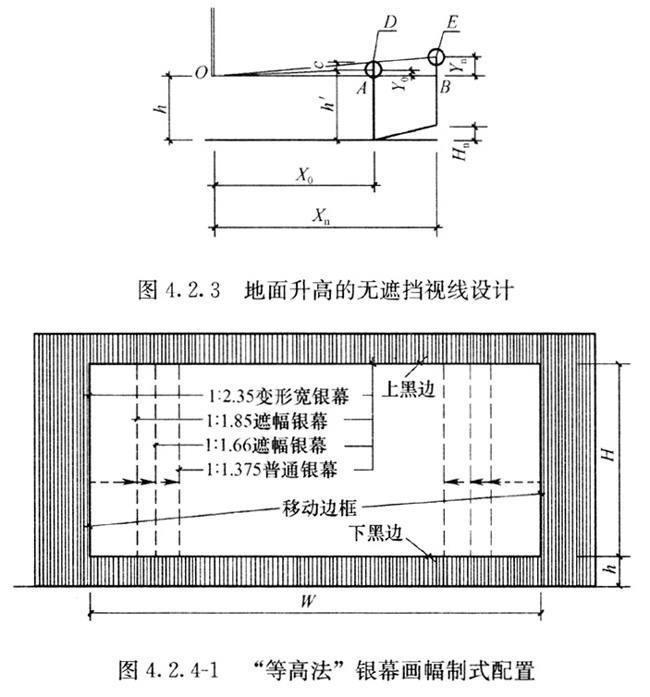 2) 普通幕和遮幅幕的高度宜相等,宽度可根据画幅高宽比调整(图4.2.4-3)。